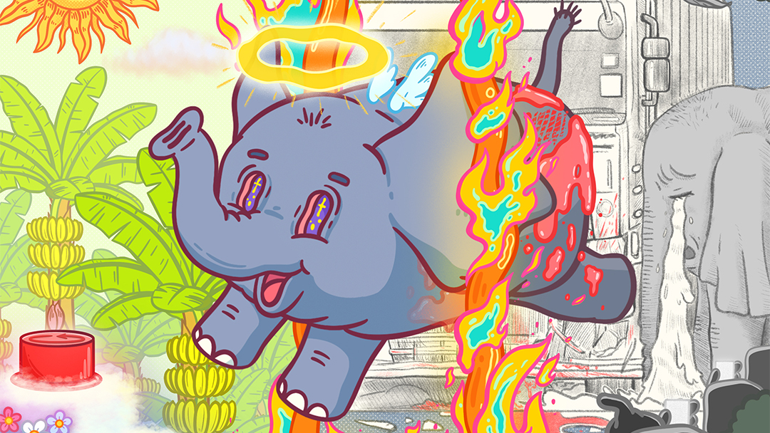 這幅作品獻給那只小象,也獻給所有在現實中受苦卻被遺忘的生命。