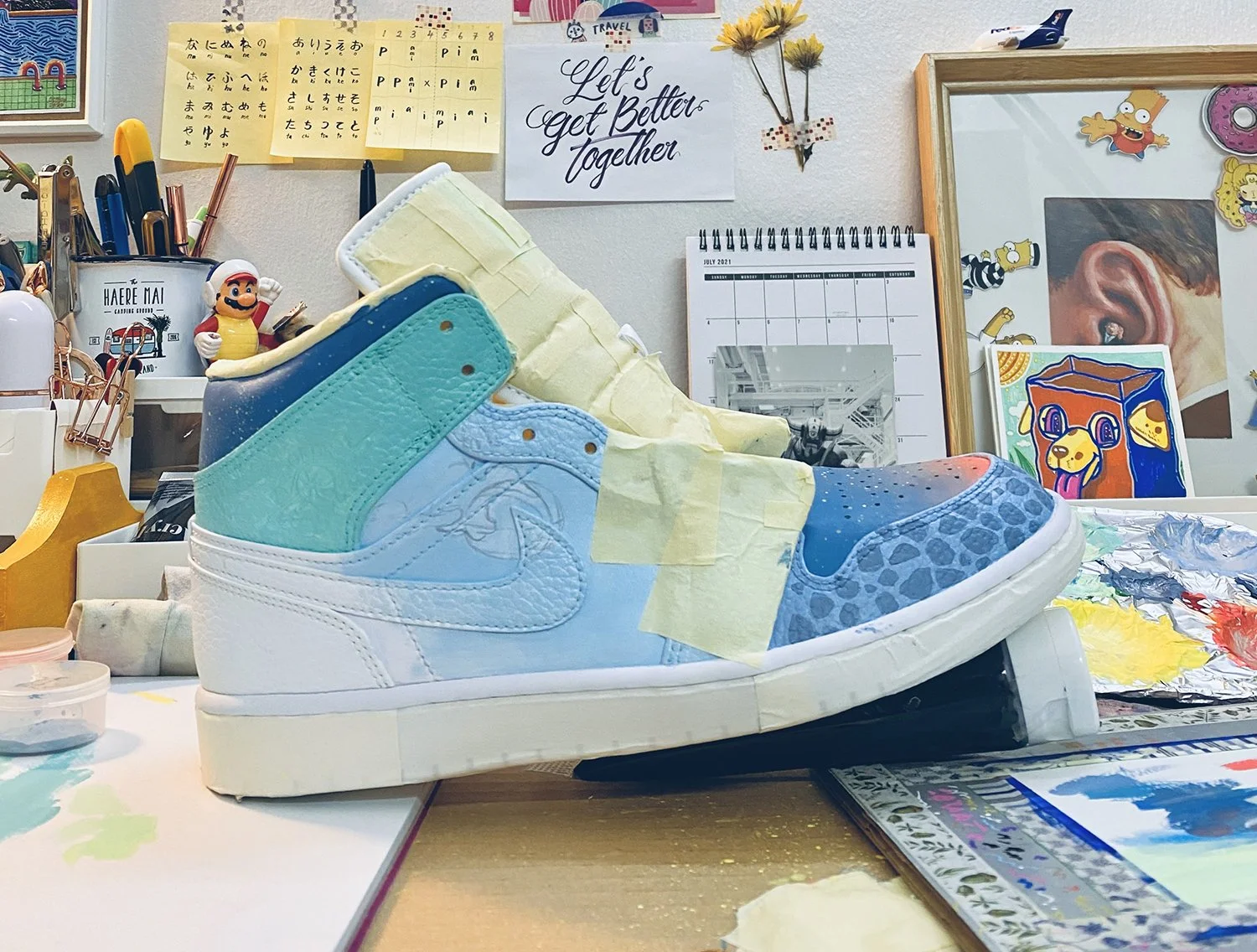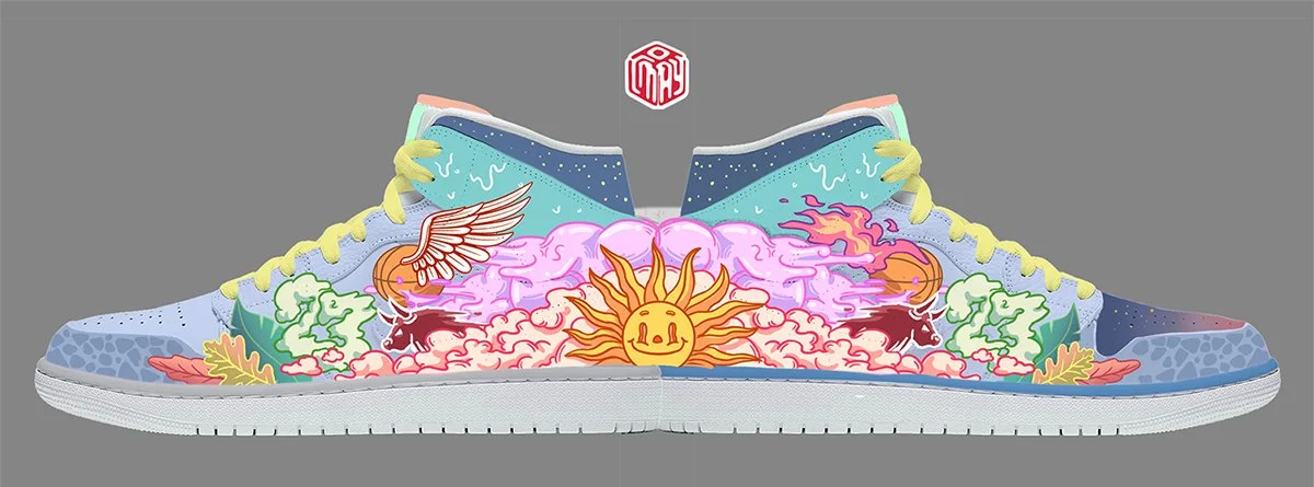 This custom sneaker pays tribute to Michael Jordan’s legendary basketball journey. Inspired by his iconic No.23, Red Bull-like energy, and relentless drive, the design captures the spirit of flight, power, and passion that defined his game.